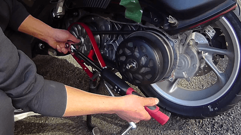 次に組み上げたセカンダリープーリを車体に取付け、クラッチアウターと一緒に共締めします。