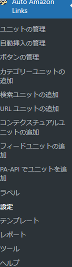 有効化すると、管理メニューに「Auto Amazon Links」が追加されます。
