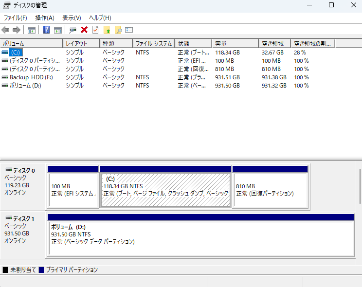 - おそらく、以下の2つのパーティションが表示されているはずです。