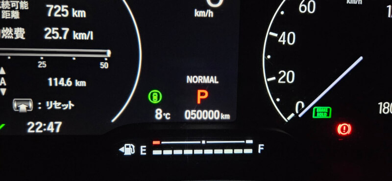 ある日の帰宅途中、メーターを見るとあと数キロで50,000kmの表示。