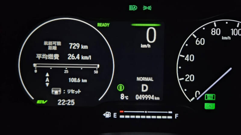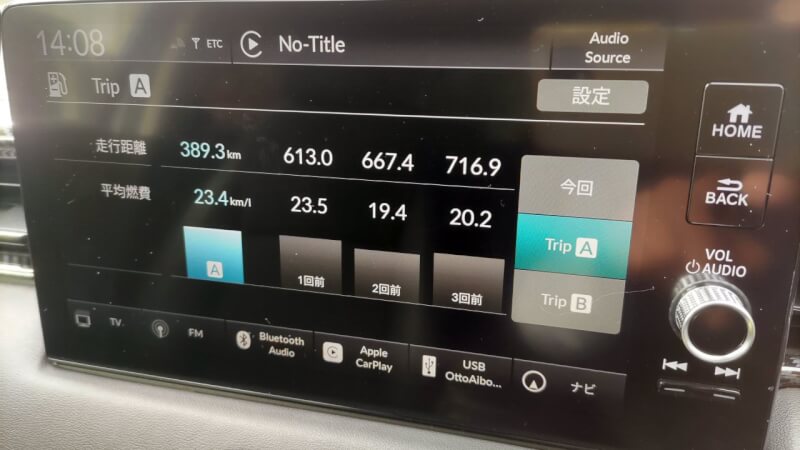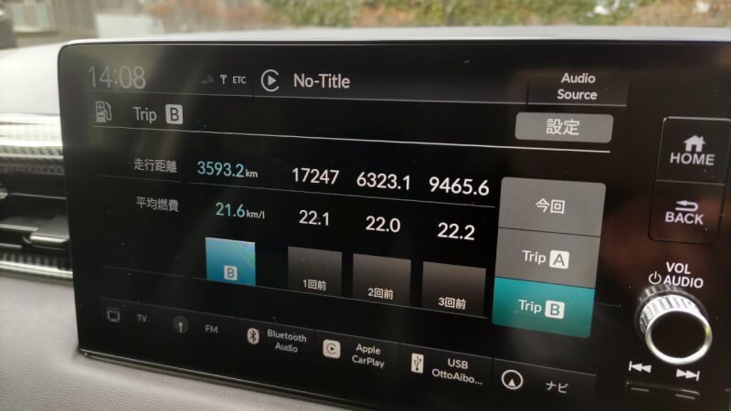 これまでの累計平均燃費はおおよそ22km/L前後をキープ。