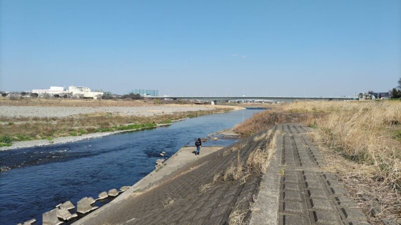 私のルアーにはノーバイト。夕まずめを前に、最後の望みを懸けて是政橋エリアへ向かいます。